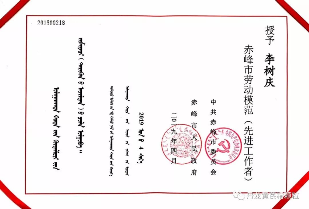 此次荣誉的获得,不仅是对李树庆同志勇于探索,务实求真的肯定,也是对几代丹龙人不忘初心、牢记使命、工匠精神、薪火相传的褒奖和激励。我们将继续秉承光荣的劳模精神和“传承中华古文明,倡导健康新文化”的企业愿景,主动学习、勤于实践,干一行、爱一行、精一行,奏响劳模精神最强音,形成健康文明、昂扬向上的企业文化,为民族医药事业再添光彩,为实现小康社会,推动赤峰持续跨越发展添砖加瓦。